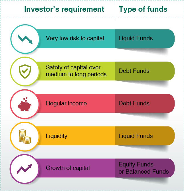 For example, for senior citizens, large cap equity funds and debt funds are suitable as they have very low risk taking ability.